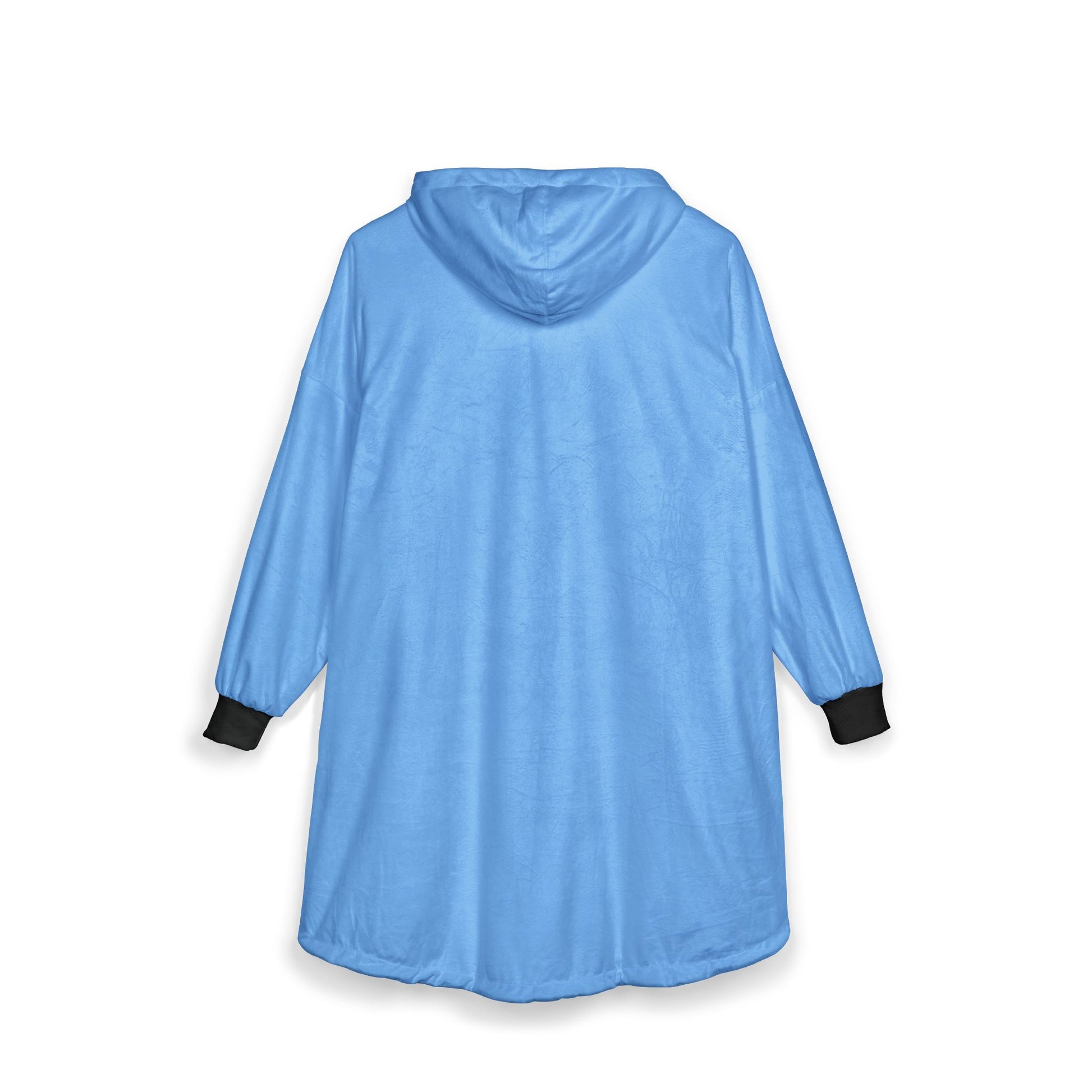 A cloud-soft hooded blanket that feels like slipping into a calm winter evening. Lightweight and plush, it wraps you in gentle warmth without weighing you down — great for lounging on the couch, reading with a mug, or layering during a movie night. The roomy kangaroo pocket holds your hands or snacks, and the hood offers an extra cozy refuge for chilly moments. The serene sky-blue fleece and subtle snowflake accents give it a quietly seasonal look that blends with cabin nights or quiet holiday mornings. Easy to wear, easy to live in — a soft companion for slow, comfortable days.