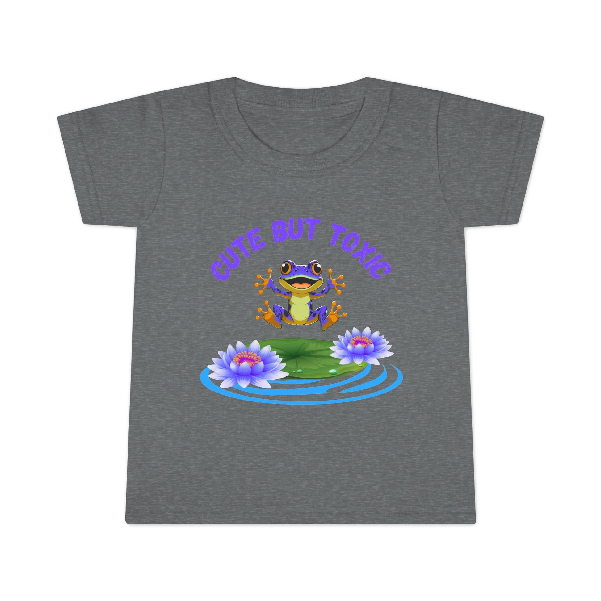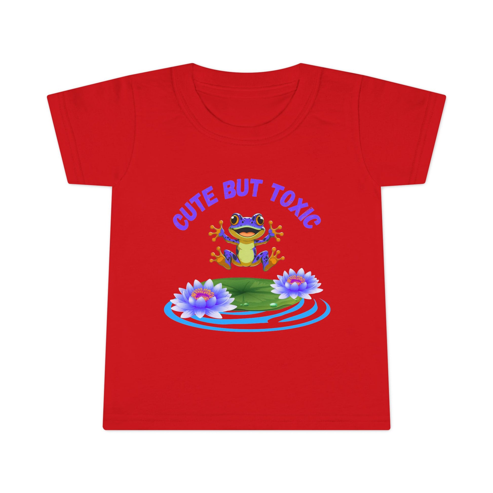 Introduce a splash of personality into your toddler's wardrobe with this charming toddler t-shirt. Featuring a playful design that reads 'Cute But Toxic,' this shirt offers a fun twist that's sure to grab attention and spark smiles. Perfect for playdates, family gatherings, and casual outings, it embodies a lighthearted and quirky vibe that resonates with parents looking for something unique. Ideal for birthdays, Halloween, or just because, this shirt adds a delightful touch of whimsy to any young child's ensemble.