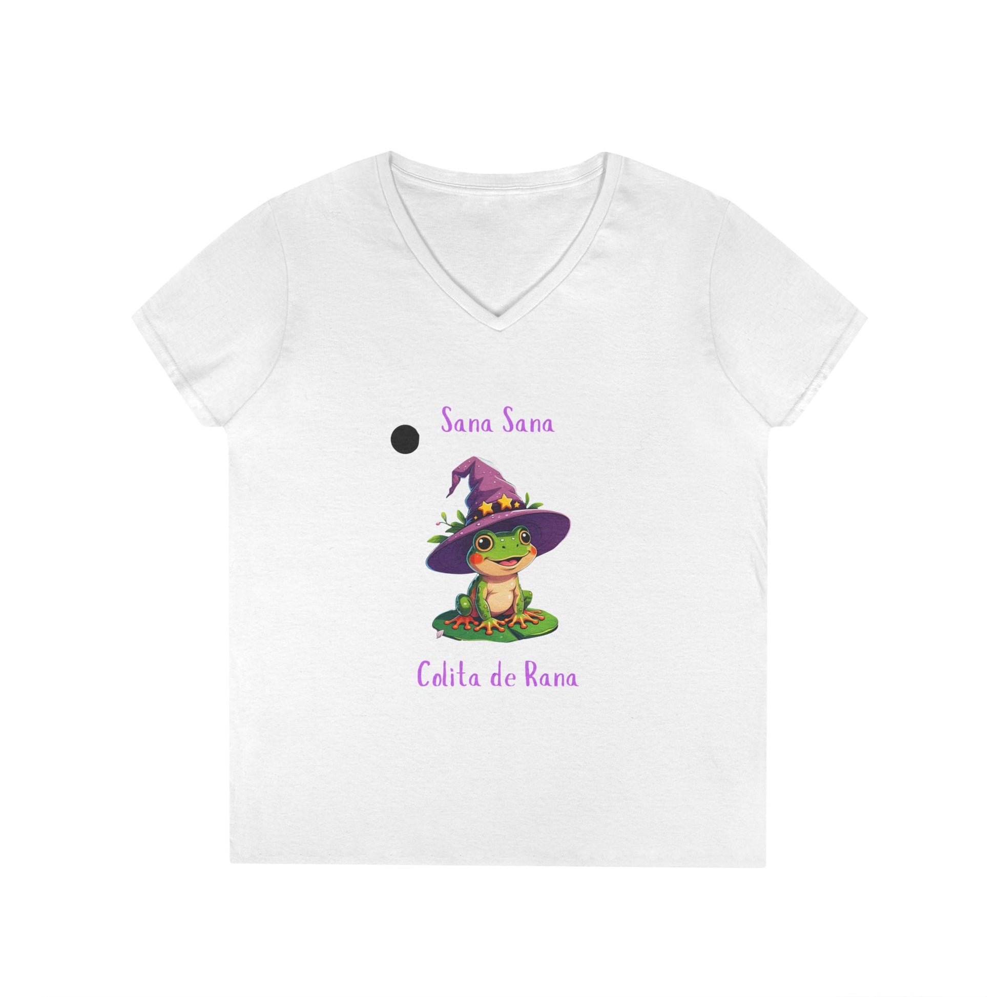 Introducing a charming Ladies' V-Neck T-Shirt that brings a touch of fun and comfort to your wardrobe. This shirt features a playful design perfect for celebrating seasonal festivities or everyday wear. Made from soft, breathable cotton, it is ideal for casual outings, cozy family gatherings, or as a delightful gift. The semi-fitted silhouette flatters various body types while ensuring all-day comfort. This shirt is especially great for friends and family who enjoy whimsical designs for Halloween or fun parties. Feel festive and stylish during celebrations, or wear it for a casual day at home. Perfect for witches, magic lovers, or anyone in need of a delightful graphic tee!