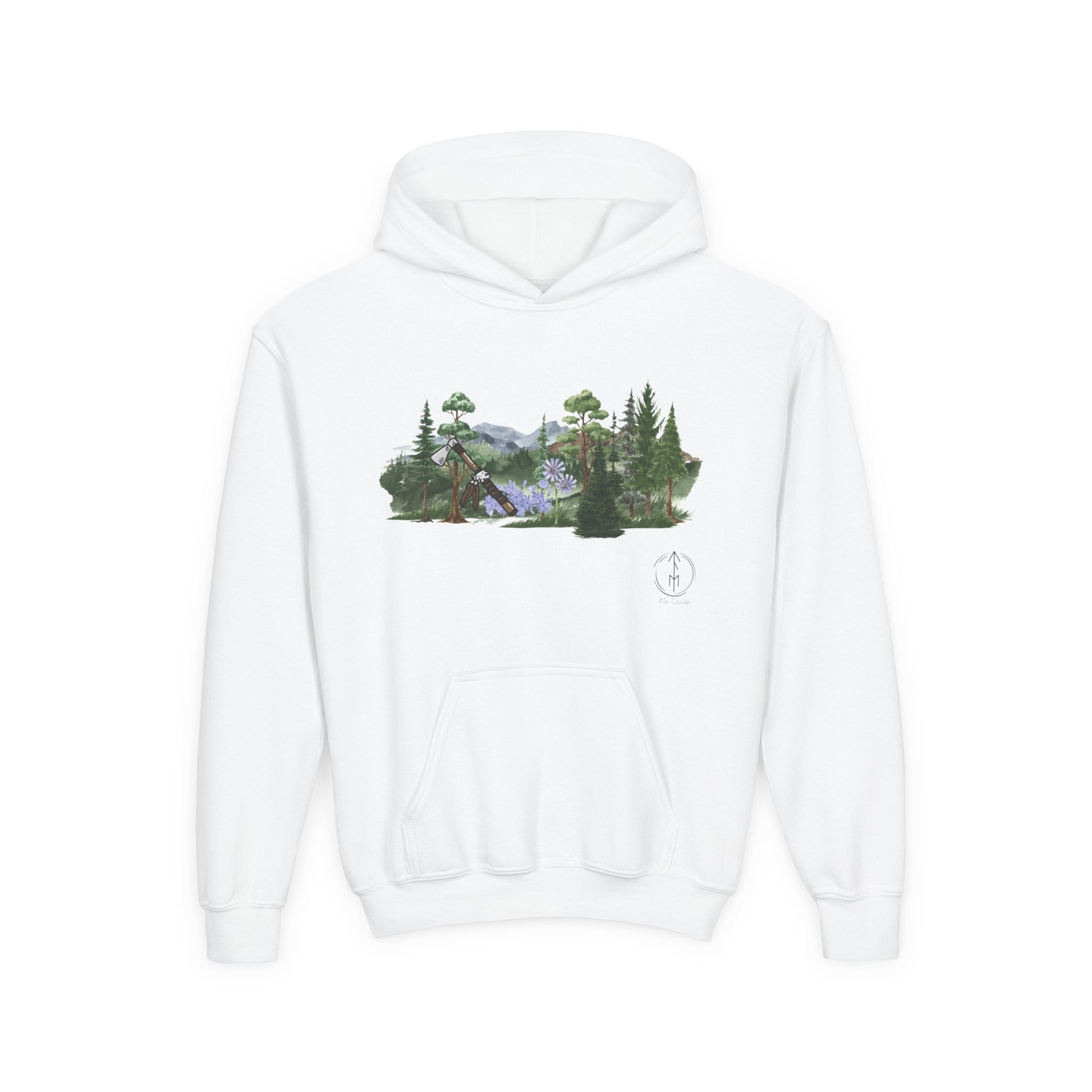 The youth blend hooded sweatshirt is made of ultra-soft, preshrunk fleece that feels wonderful against the skin. The garment is 50% cotton 50% polyester with reduced lint buildup. This makes an excellent combination for printing. The front has a kangaroo pocket big enough for both hands. The neck is reinforced with twill taping.