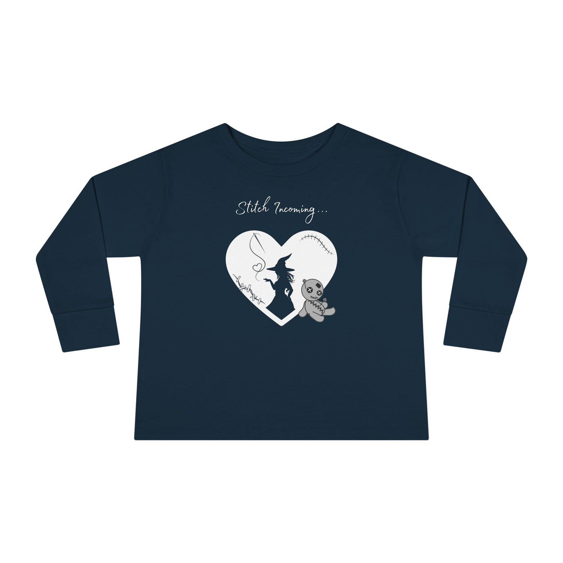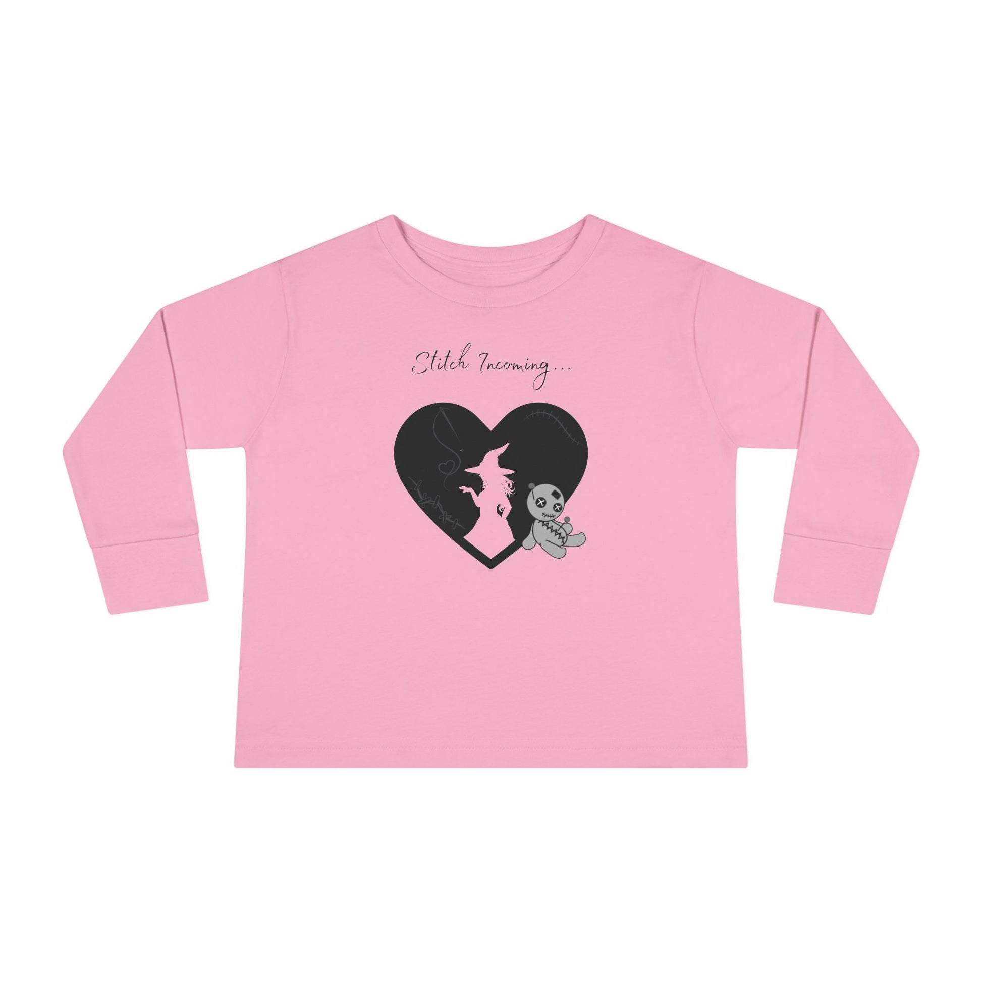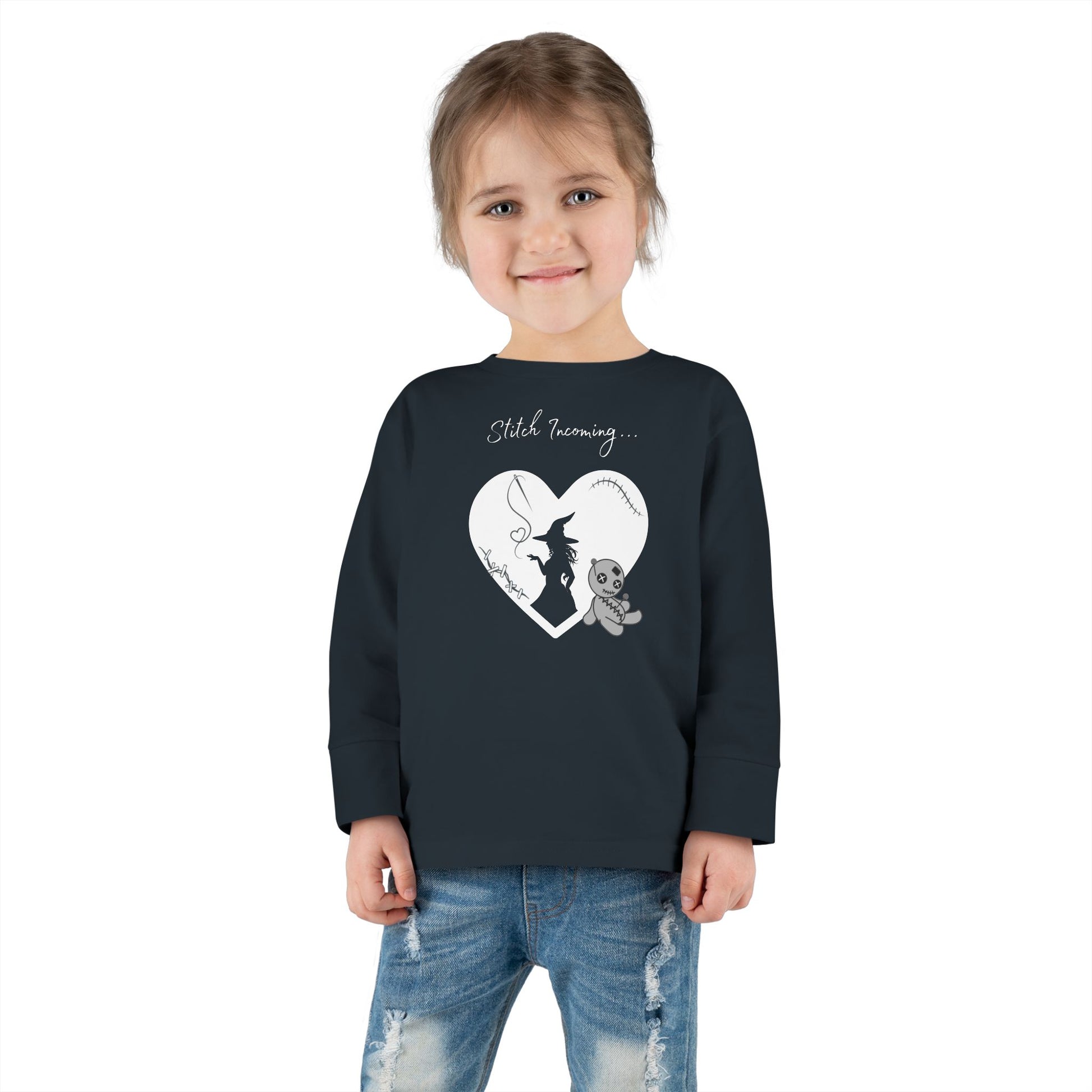 Dress your little one in this adorable Toddler Long Sleeve Tee, designed to keep them comfortable and stylish all day long. The cheerful graphic brings a fun, playful vibe, perfect for your child's adventures at home or playdates. Made with soft, breathable cotton, this tee ensures your toddler can explore their world freely. Ideal for everyday wear, birthdays, or festive occasions such as Halloween, this shirt is a delightful addition to any young child's wardrobe. It caters to parents looking for quality and cute designs for their kids, ensuring every little one can express their personality with joy.