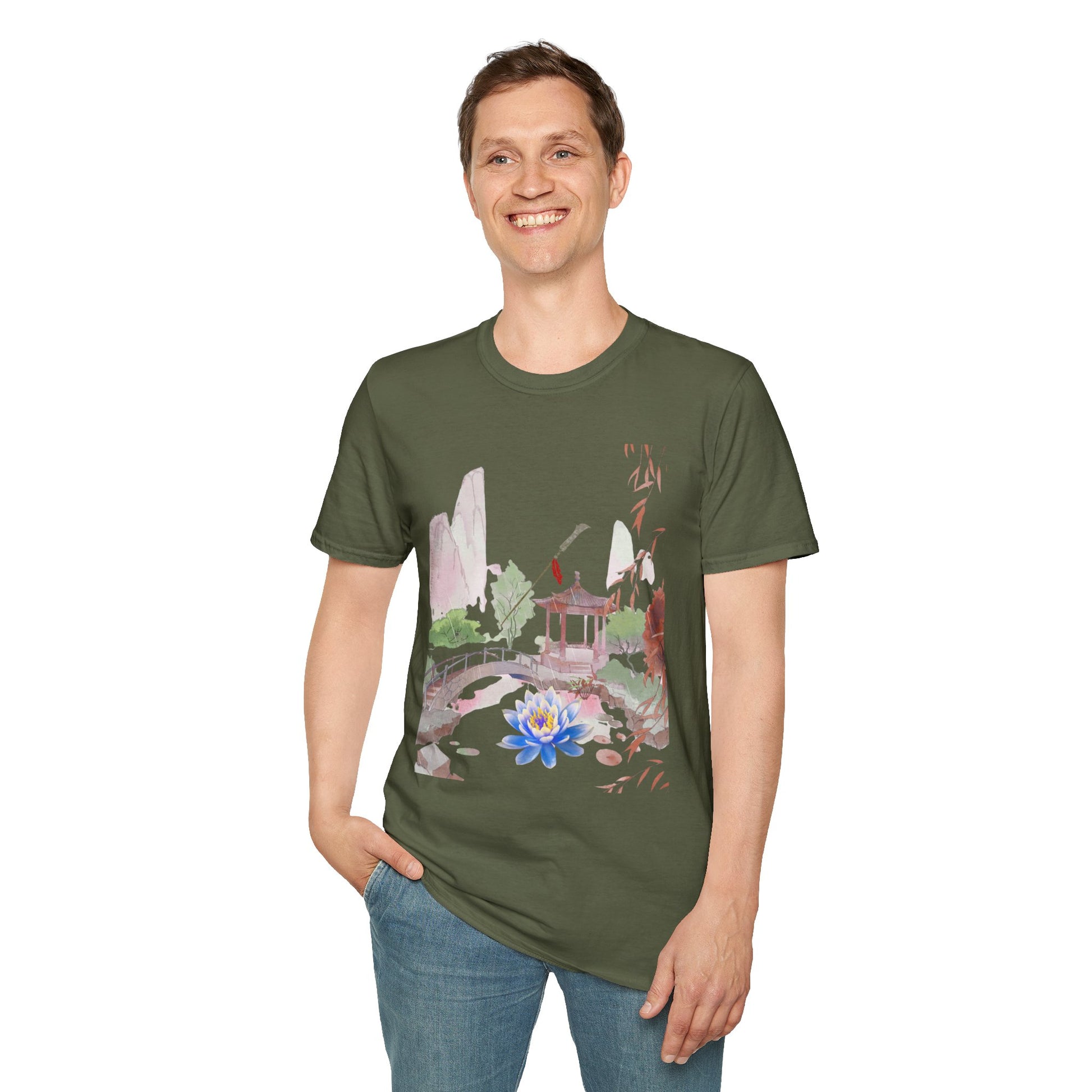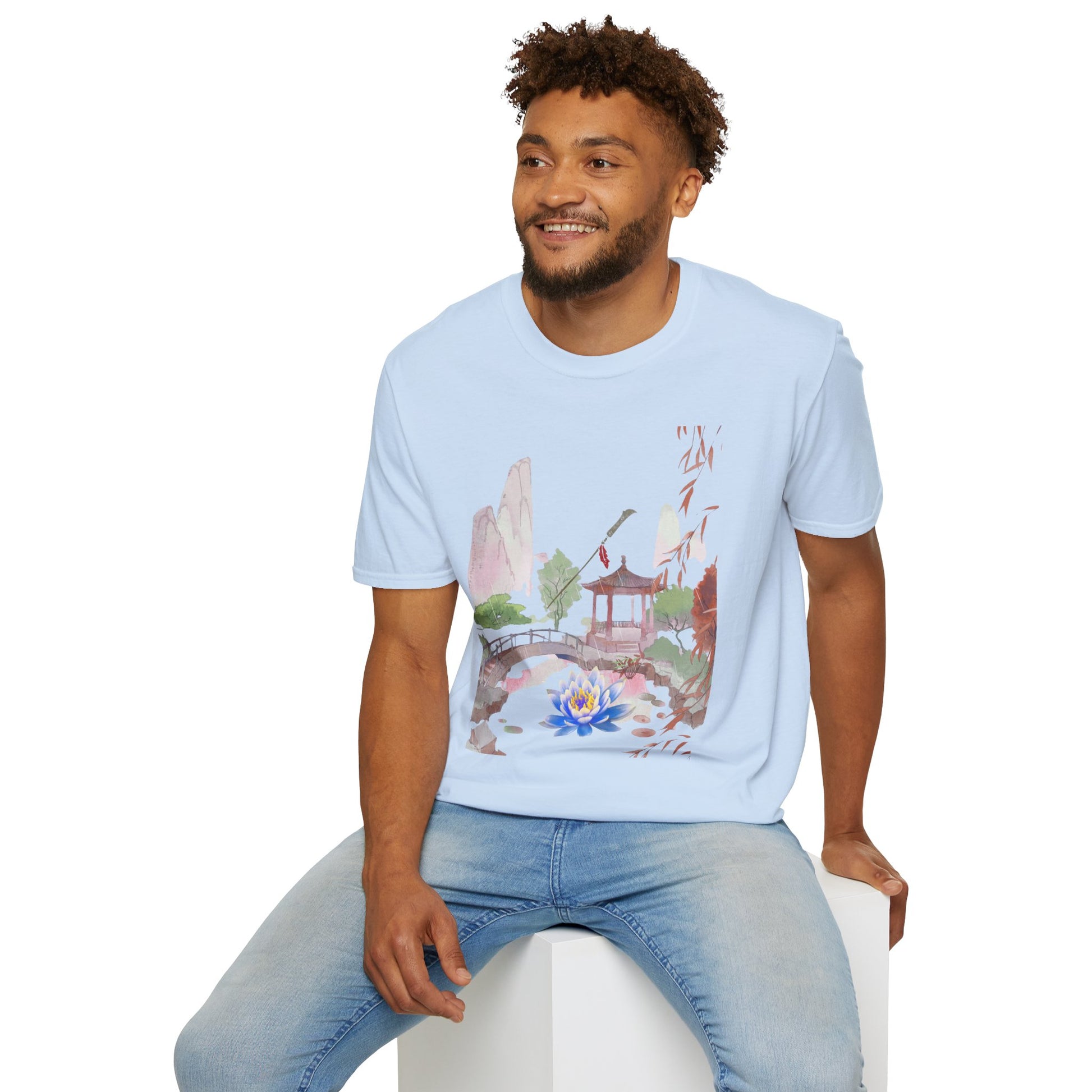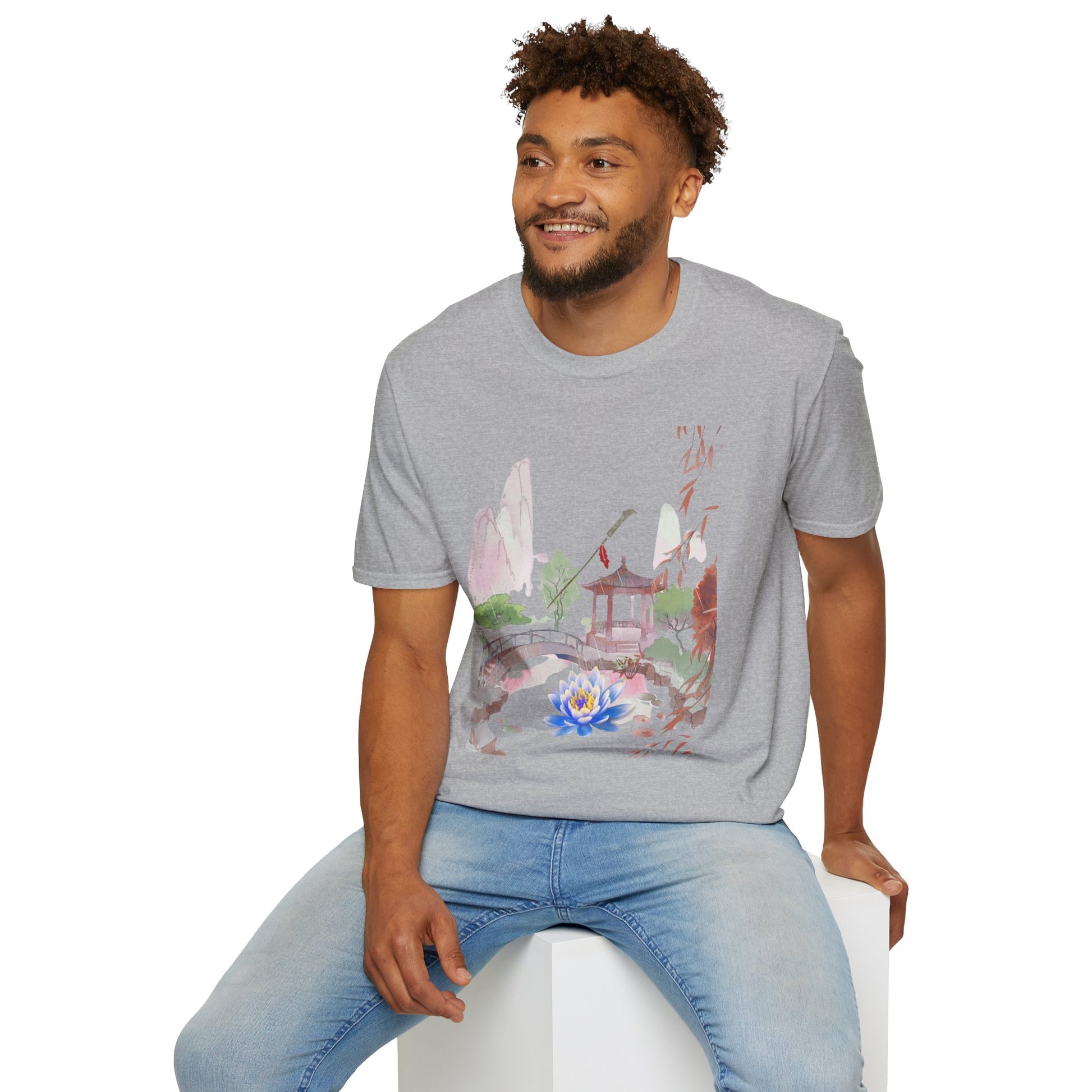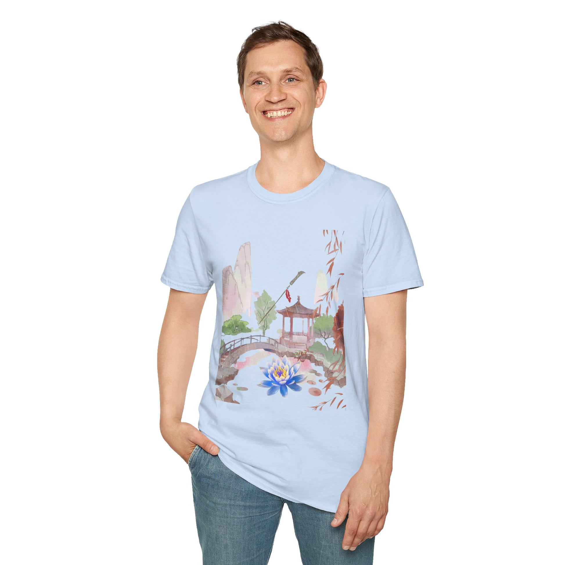 A part of the Warrior-Poet collection, this soft crewneck tee depicts a Chinese meditation garden, complete with a pavillion and a natural skyscraper mountain. It features the fabled Guandao, inspired by the legendary General Guan Yu's Green Dragon, and a blue lotus. The Three Kingdoms period of ancient China is one of the most retold stories of honorable warriors and fantastical poetry. The history of China is woven into a beautiful tapestry that continues to inspire as the ages pass.